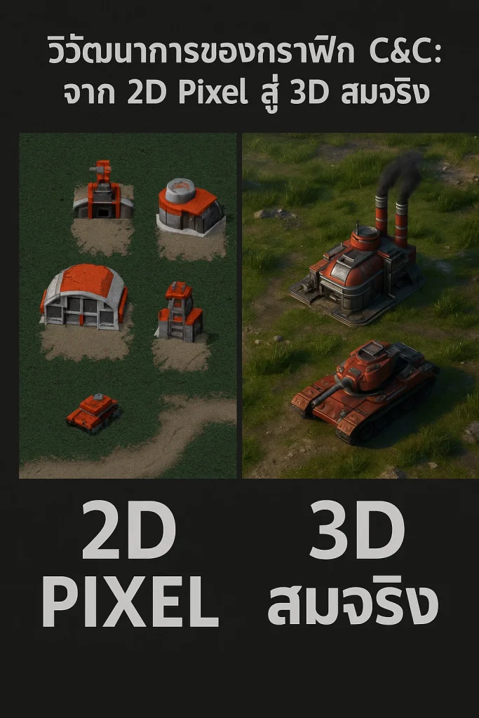 จาก 2D Pixel ของ Tiberian Dawn สู่ 3D สมจริงของ Generals และ Red Alert 3 วิวัฒนาการของกราฟิกในซีรีส์ C&C ไม่ได้เป็นเพียงการอัปเกรดภาพ แต่เป็นการพัฒนา “ประสบการณ์” ที่ผู้เล่นสัมผัสได้จริง